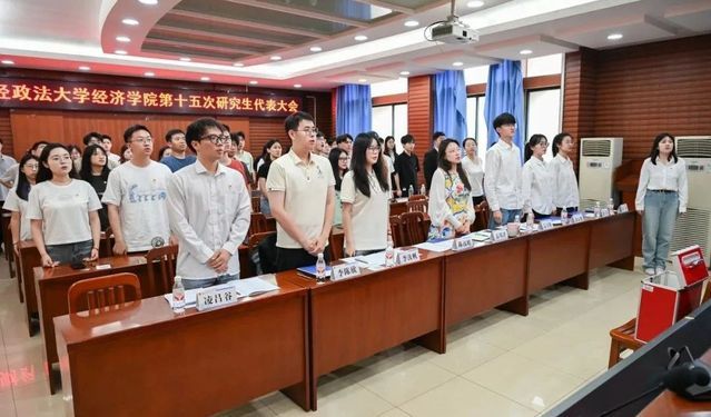 在激昂的团歌声中,第十五次研究生代表大会圆满落幕。未来,经济学院研究生会将继续坚持“全心全意为同学服务”的宗旨,以青年之智创新服务方式,以务实之举回应同学关切,在思想引领、学术创新、实践服务等领域持续深耕,用实际行动谱写青春华章!