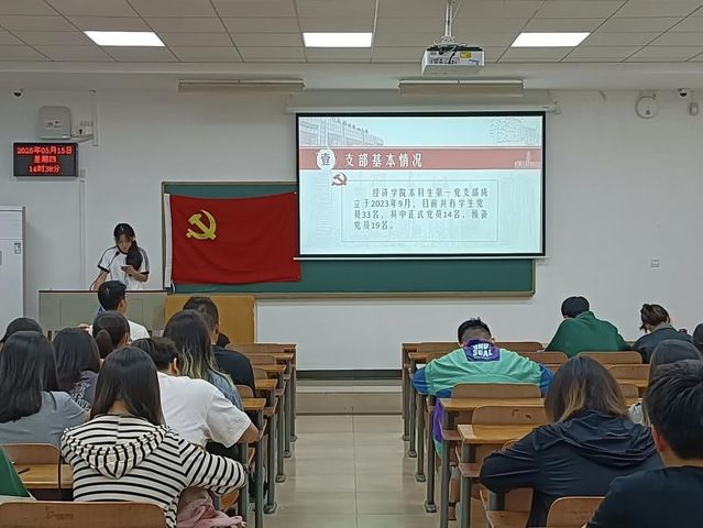 随后,各支部围绕党建与学习融合成果进行汇报。经济学院第一党支部以“坚定主方向,把牢主动权”为主线,介绍支部通过“形式丰富,寓教于乐”的党建活动凝聚支部党员的创新举措;信息工程学院本科生第二党支部则聚焦“党建+实践”模式,展示学生党员在社会实践与志愿服务中的突出表现。与会党员就支部规范化建设、党员教育管理展开热烈讨论,为深化作风建设注入新思路。