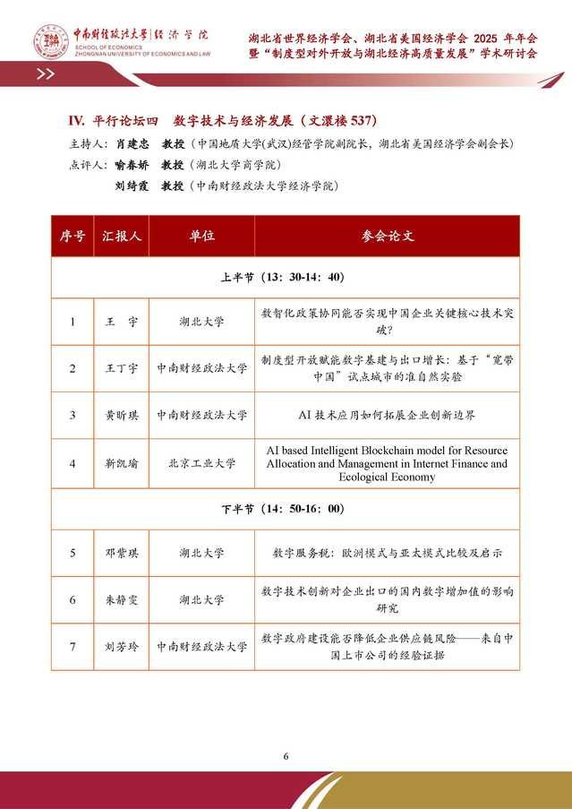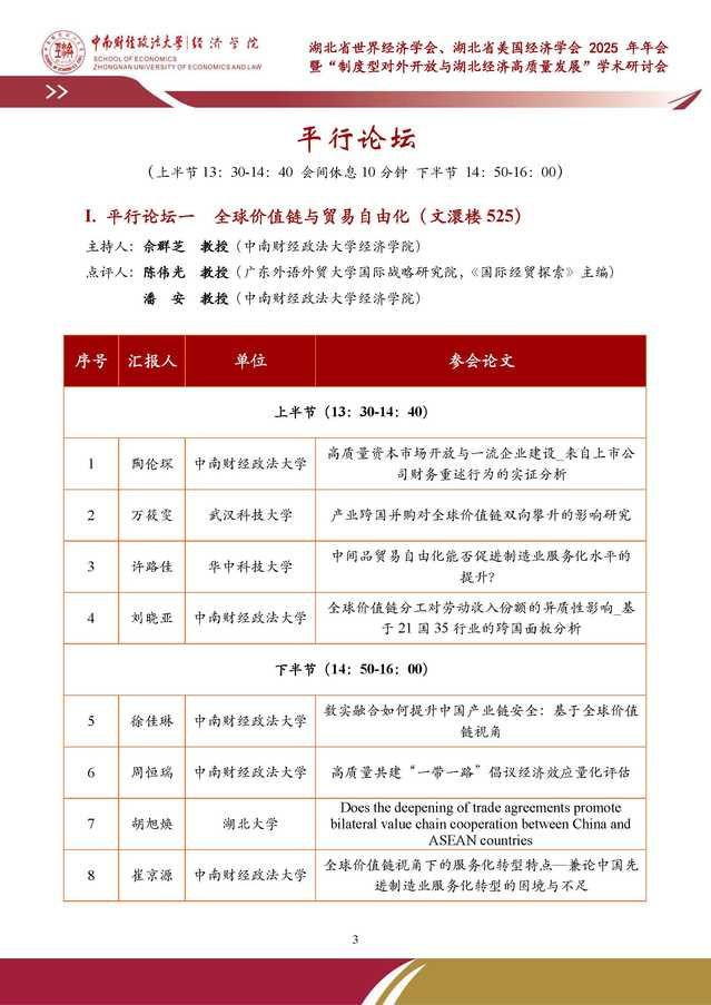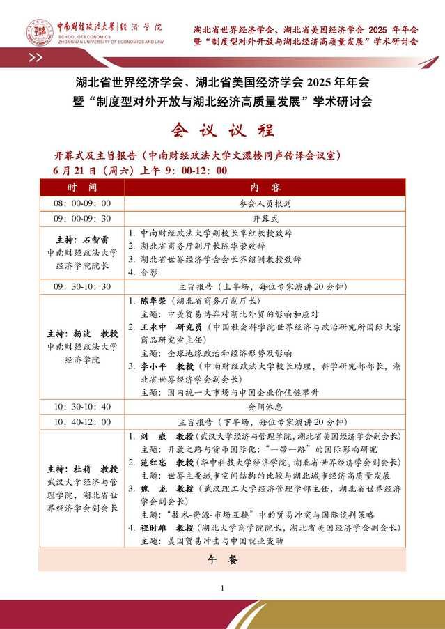 【学术会议】湖北省世界经济学会、湖北省美国经济学会2025年年会暨“制度型对外开放与湖北经济高质量发展”学术研讨会 会议议程