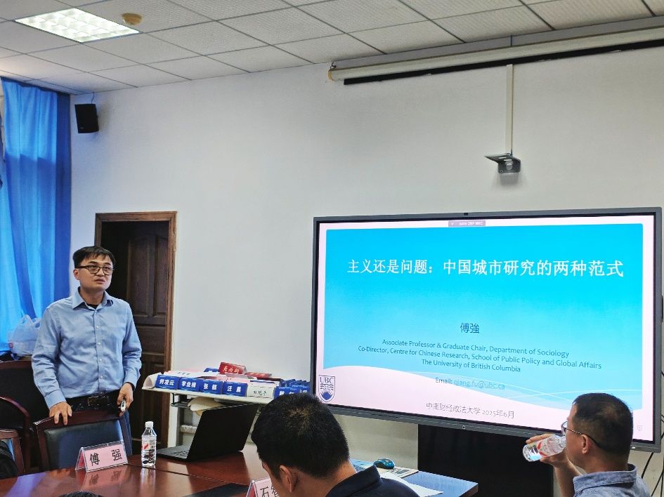 (通讯员:张麒)2025年6月18日上午,“文澜高端论坛系列活动”第92期在文泉南207会议室成功举办。本次讲座特别邀请了加拿大英属哥伦比亚大学(UBC)社会学系、UBC公共政策与全球事务学院中华研究中心(CCR)联合主任傅强副教授,为我院师生带来了一场题为“主义还是问题:中国城市研究的两种范式”的学术报告。