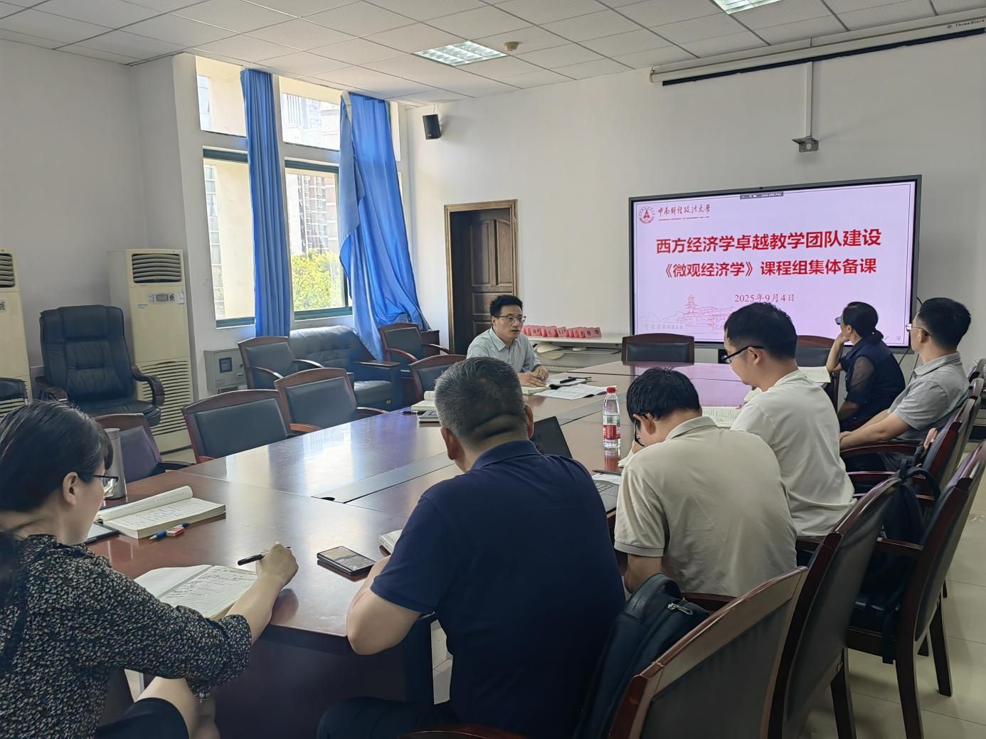 为深入贯彻落实“四个回归”育人理念,深化课程教学改革,全面提升本科教育教学质量与人才培养水平,2025年9月4日下午,经济学院西方经济学教学团队《微观经济学》《宏观经济学》《经济学通论》三个课程组分别于文泉楼南207、203、209会议室成功举办新学期首次集体研讨备课活动。经济学院院长石智雷,数字经济系主任周强,经济学系主任谢靖,西方经济学教研室主任刘玲,三个课程组全体成员参加本次活动。
