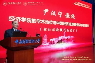 成立大会落幕之后,进入第二阶段——“以高质量发展推进中国式现代化研讨会”,由经济学院院长石智雷主持。本环节特邀三位深耕经济学领域、成果卓著的学者作主旨发言,围绕“经济学院的学术地位与中国经济治理知识体系的构建”、“经济学自主知识体系构建”和“数字经济的演进逻辑”关键议题分享洞见,为现场师生与校友带来思想启迪。