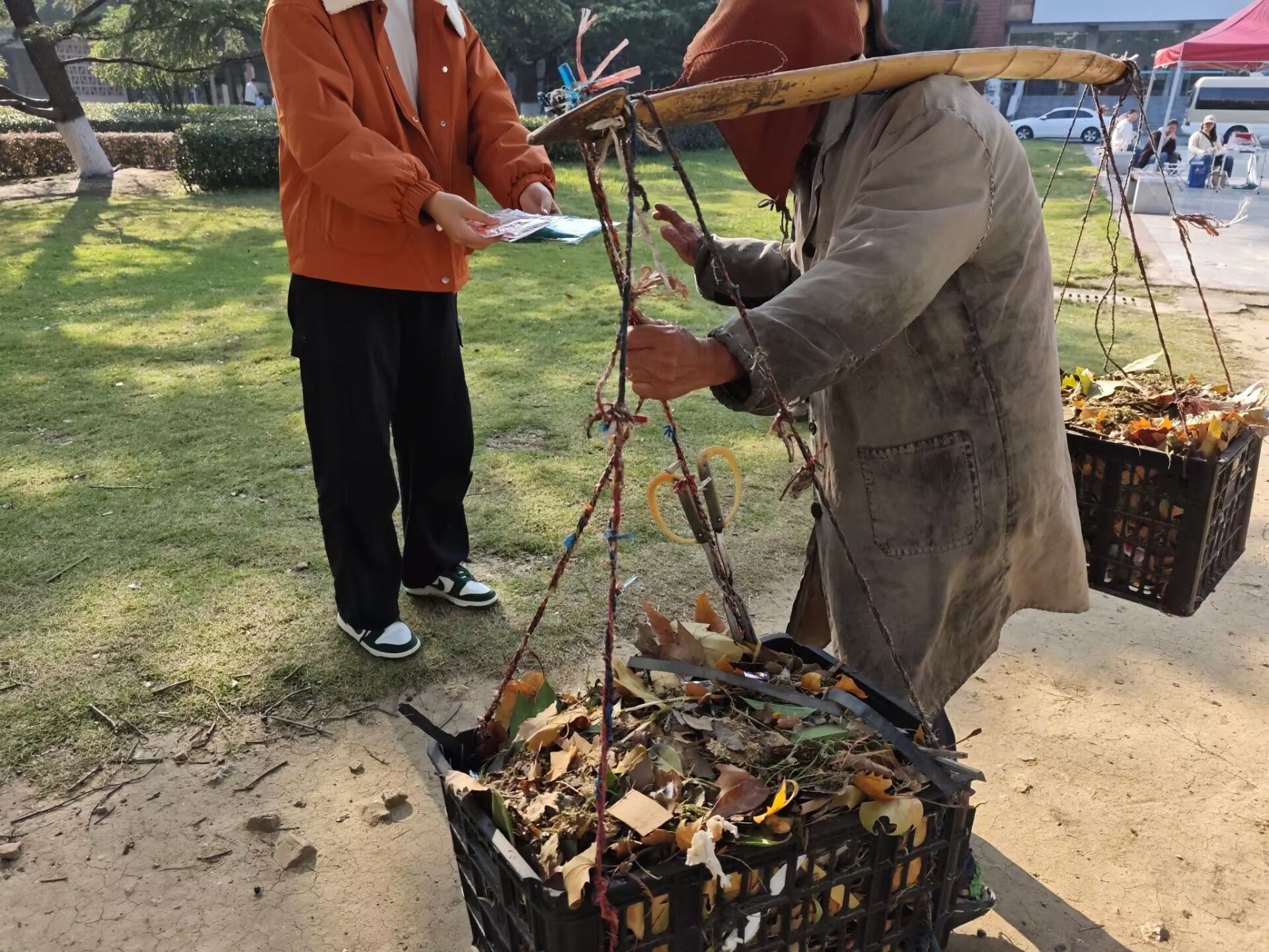 而整场活动最动人的篇章,藏在公益派送环节:志愿者们主动走向坚守岗位的保洁阿姨与校园安保人员,将准备好的暖宝宝与手套轻轻塞进他们的工具袋或递到他们冻红的掌心,并细细叮嘱使用细节;他们小心翼翼收好礼物,眼角荡漾开的笑意,比冬日暖阳更显滚烫。
