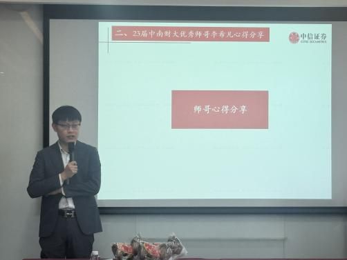 随后,优秀校友分享干货满满。2023届校友李希凡从平台选择、能力提升、薪酬激励三个维度,分享了在中信证券的成长经历,强调头部券商全牌照优势带来的广阔业务场景与清晰晋升路径,以及完善的制度和薪酬体系对年轻人的赋能作用。2025届校友骆沛瑜则结合自身经历,就“职业选择与在校准备”给出实用建议,指出大学阶段的课程学习、社团活动与实习经历是职业发展的重要基石。分享结束后,两位校友还针对同学们的提问进行逐一解答,鼓励师弟师妹明确职业方向,提升综合素养。