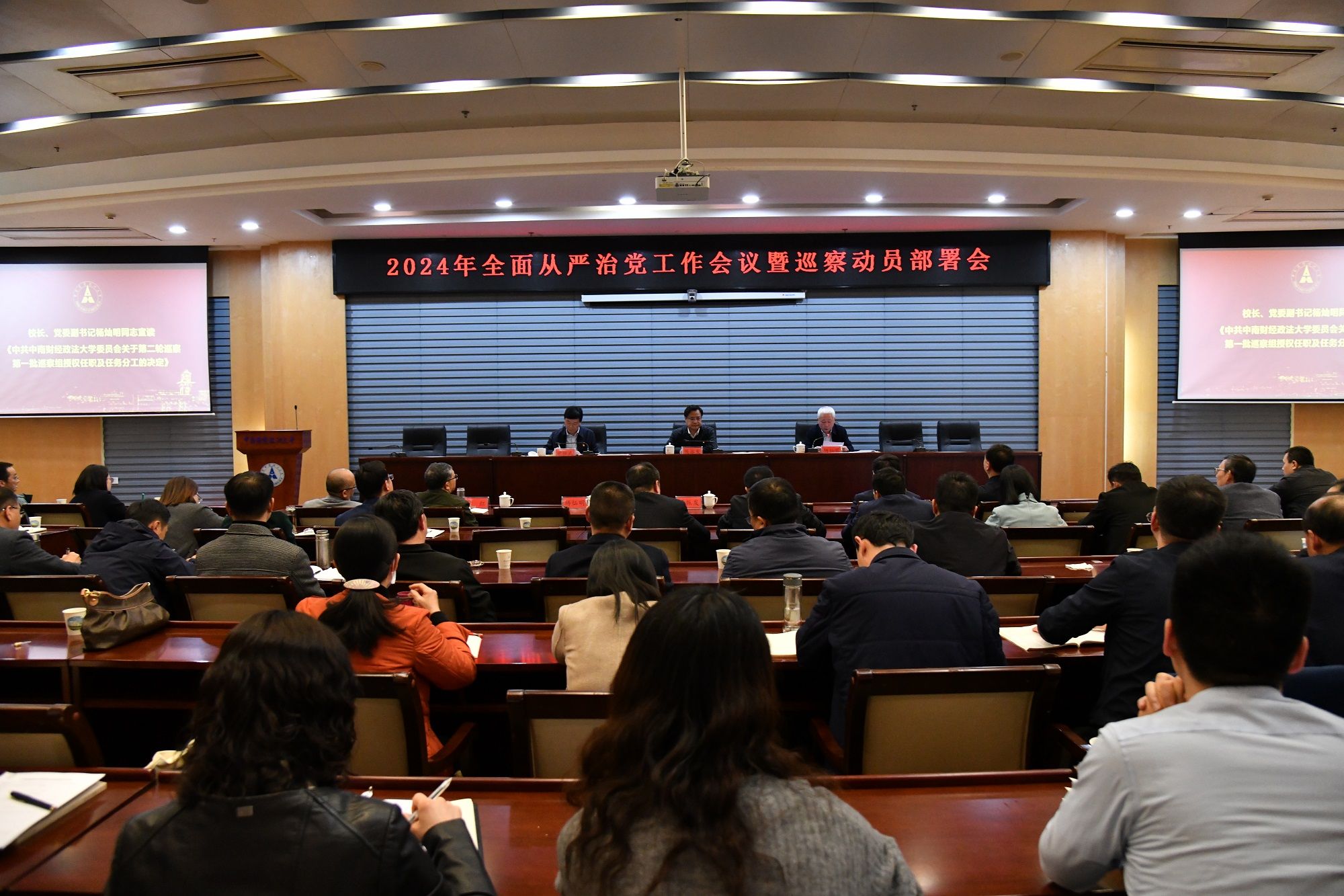 新闻网讯(通讯员 雷霆 摄影 杜鹏)3月20日,学校党委召开2024年全面从严治党工作会议暨巡察动员部署会。校党委书记、党委巡察工作领导小组组长侯振发出席会议并讲话,学校领导班子成员、校党委委员、纪委委员,党委第二轮巡察第一批巡察组组长、副组长、组员,各二级单位党政主要负责人,二级纪委书记参加会议。校长、校党委副书记、党委巡察工作领导小组组长杨灿明主持会议。