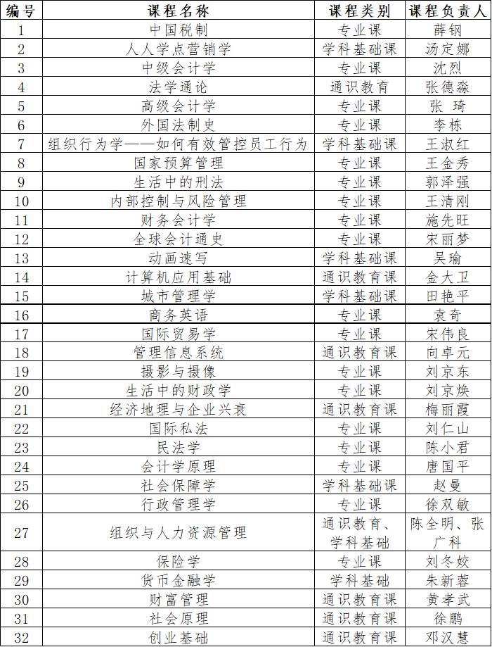 我校首批慕课建设项目一览表