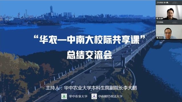 2020年7月15日下午,“华农—中南大校际共享课”总结交流会线上会议顺利召开。华中农业大学本科生院李大鹏副院长,教学运行管理处处长王春潮,我校教务部部长李志生教授,教务部副部长万世清、范丽萍,以及双方共享课授课教师、学生代表和相关教学管理人员参加了讨论、交流。