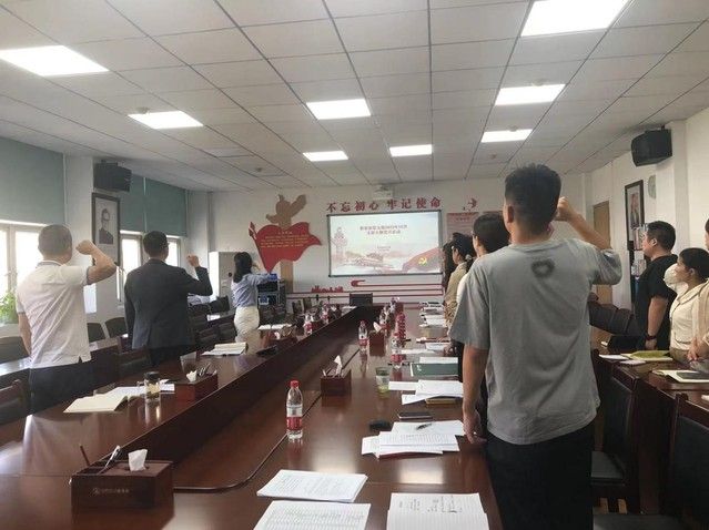 会议伊始,由组织委员王颖同志带领全体党员重温入党誓词。宣传委员王运达同志诵读党章。