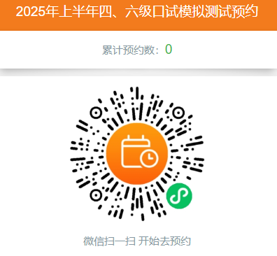 学校于5月15日下午在创新创业大楼B栋为参加本次口语考试同学安排模拟测试,请有意者扫描下方二维码进行预约。预约成功后,于当日按时参加。