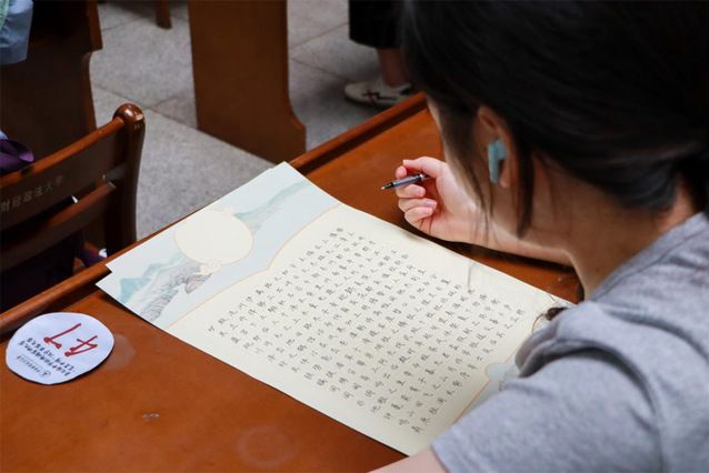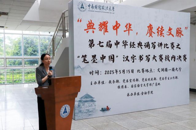 (记者 周小婷 摄影 郎雨彤)笔走龙蛇承古意,墨染春秋续华章。5月15日下午,由金融学院承办的第七届中华经典诵写讲之“笔墨中国”汉字书写大赛校内决赛在文澜楼一楼成功举办。本次大赛设留学生组、教师组、大学生组三个组别,硬笔、软笔和粉笔三个赛道,吸引了众多书法爱好者踊跃参与。湖北省书法院副院长魏晓伟、中国书法家协会会员廖厚君、湖北省青年书协副主席谈维担任本次大赛评委,校内相关单位参加活动。