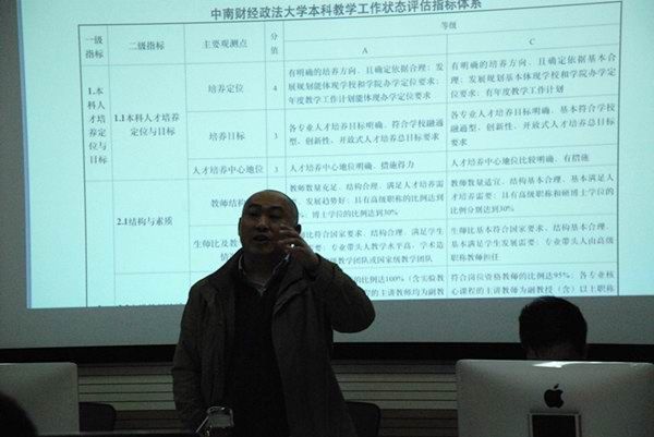 王华副院长对照《米兰电竞·(中国区)本科教学工作状态评估指标体系》,对审核评估需要把握的几个关键环节作了说明,并围绕本科人才培养定位与目标、师资队伍、教学基础条件与利用、教学改革与建设、教学运行与管理、人才培养质量等指标体系的各观测点方面进行了详细阐释。