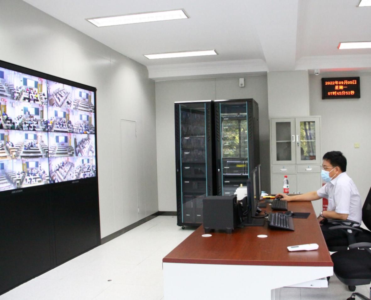 刘仁山首先在文津楼三楼多媒体监控室,在电脑上逐一查看各教室的任课教师的课前准备、学生到课情况。随后深入文津楼、文润楼巡课,了解教师授课、学生听课的状态。开始第二大节课堂教学时,刘仁山又来到文泽楼查看教学运行情况。从检查情况看,老师们都精神饱满、声音洪亮、讲课投入,新生的学习状态好。