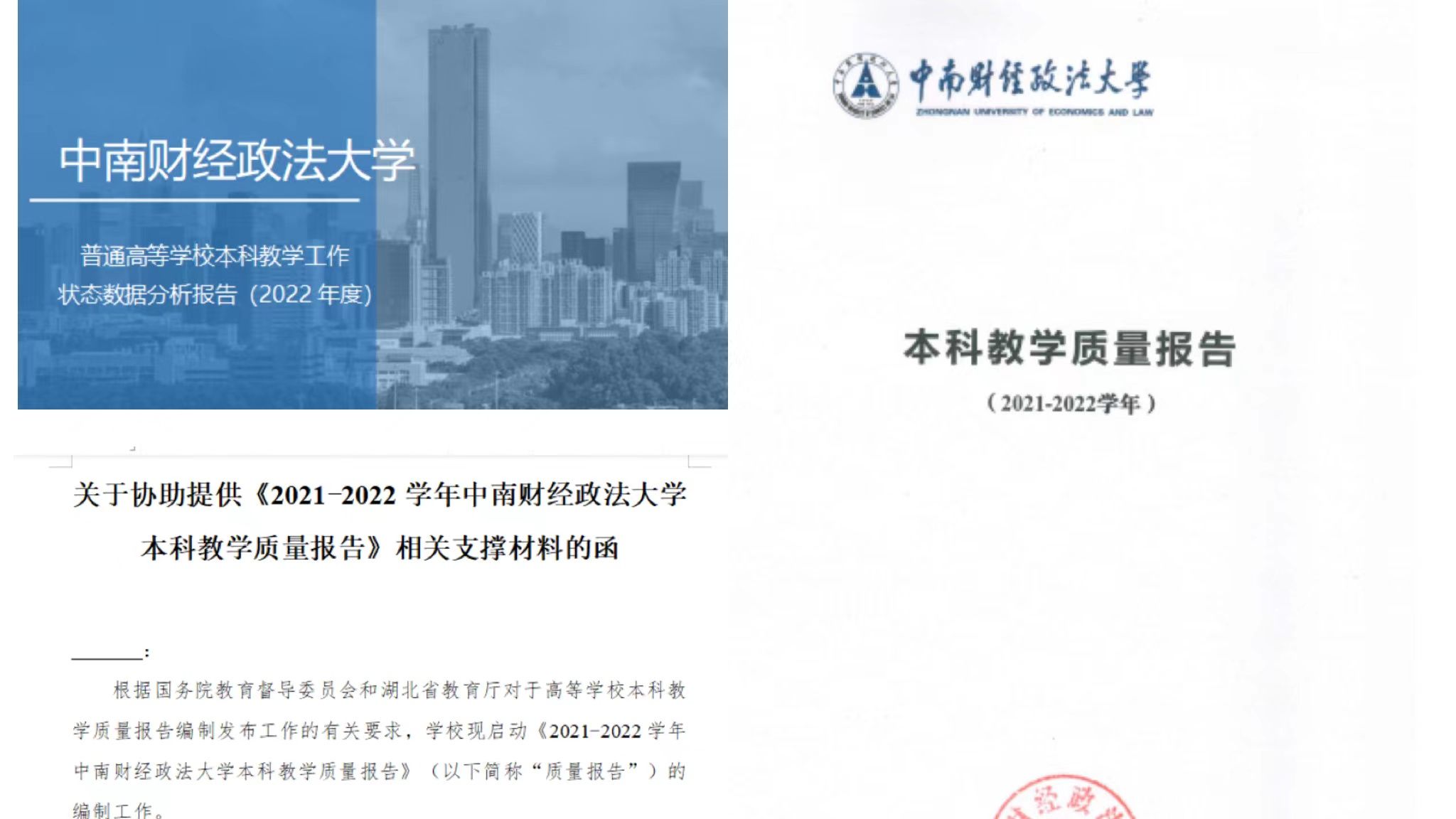 教学质量报告是本科教学质量常态监测的重要手段,其中的支撑数据均直接来源于国家数据平台监测数据。根据国务院教育督导委员会办公室发布的教学质量报告编制工作通知,学校迅速制定编制方案,汇总整理相关单位提供的支撑材料,深入进行文本分析与数据分析,征求意见,严格按照工作要求完成报告编制,研判学校本科教育教学中存在的短板,凝练人才培养优势亮点,彰显学校办学特色。《米兰电竞·(中国区)2021-2022学年本科教学质量报告》已于2022年12月20日在学校门户网站信息公开专栏,面向社会公开发布(http://xxgk.zuel.edu.cn/bkjxzlbg/list.