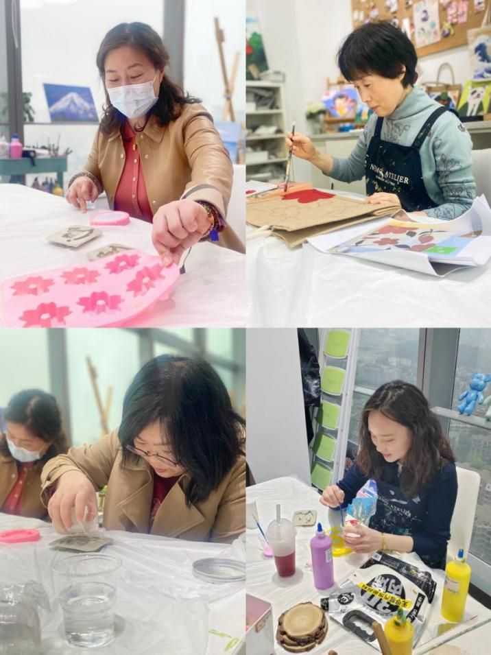 随后,中心组织女教职工开展创意手工DIY活动。在专业老师的指导下,大家开始选样式、挑材料。制作期间,工作室留下了一阵阵欢声笑语,也留下了一幅幅精美作品。