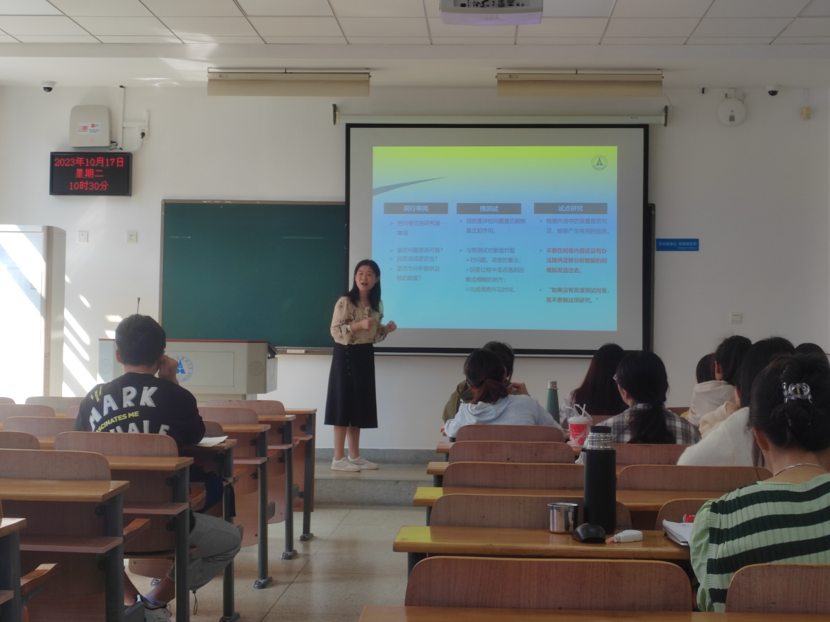 三是重视教学互动,强化学生对研究方法的掌握和应用能力。在教学过程中,根据授课内容,组织课堂讨论,如围绕“确定变量、测量变量、排列问题、预测试”的问卷设计步骤,讨论“确定问卷的变量、问项设计、问卷的结构、数据的采集、预调研的情况分析”等问卷设计与应用实践问题,以强化学生对课程内容的理解和应用实践能力。