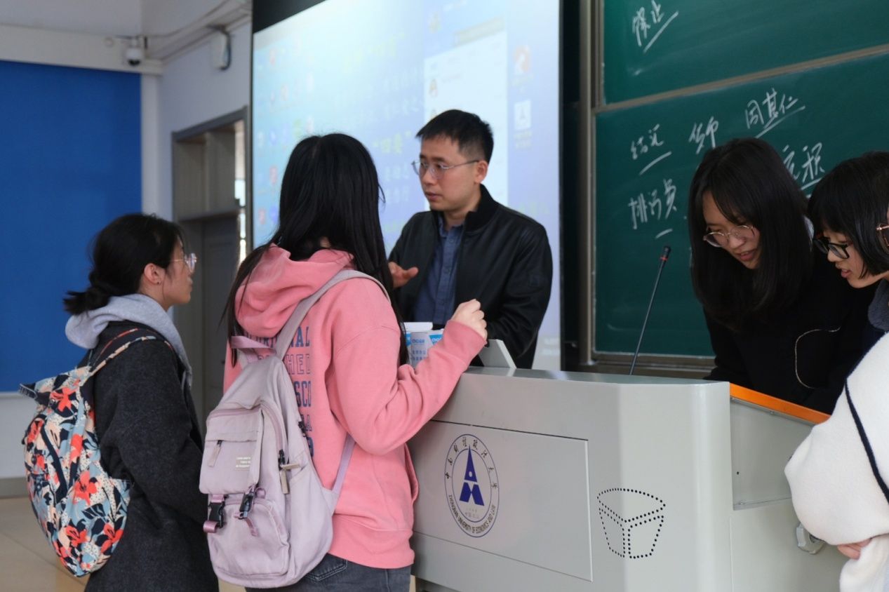 四是延伸第二课堂,引导学生课下自主学习。在讲授本节课的最后,授课老师抛出两个思考问题,并且附上推荐论文和书籍,引导学生将学习从课上延伸到课后,促使学生深化对基础理论和实践现状的理解。课程结束之后,有许多同学留下来积极与授课老师探讨经济法相关的问题,授课老师也耐心地逐一进行答疑解惑,持续沟通近半个小时之久,帮助学生课后吸收、消化经济法知识,极大地激发了学生们对学术的热情。