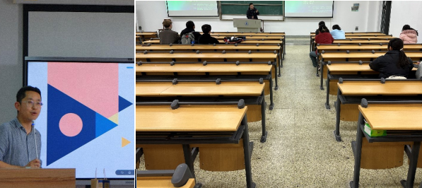 授课教师虽为青年教师,在松弛度上却颇为老成。虽然一开始呈现了肉眼可见的紧张,但在与学生们的数轮互动之后,状态迅速得以调整。学生大部分为外院跨选且为首堂课第一次碰面,但同样能够很快被调动起来加入讨论,这同松弛的课堂环境有很大关联。任课教师在讲授过程中,不时加入调侃与自我调侃,言语风趣幽默,课堂氛围轻松愉快,获得了良好的课堂效果。