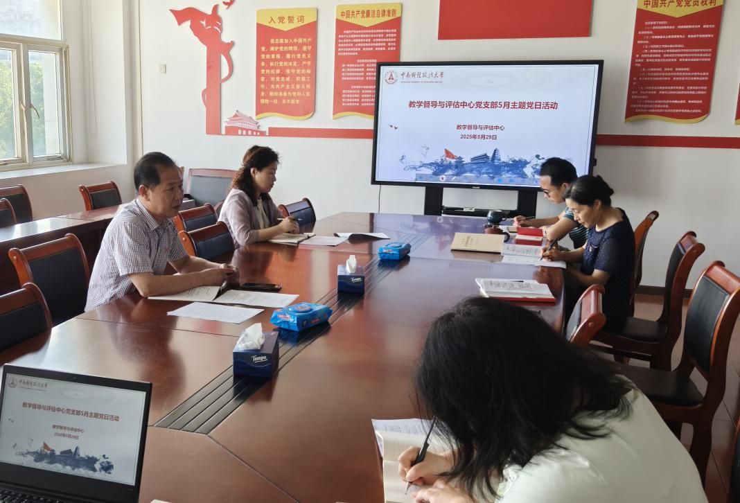 (通讯员陈金好)5月29日上午,教学督导与评估中心(以下简称中心)党支部开展了2025年5月份主题党日活动。活动由中心党支部书记万世清同志主持,中心党支部全体党员参加了活动。