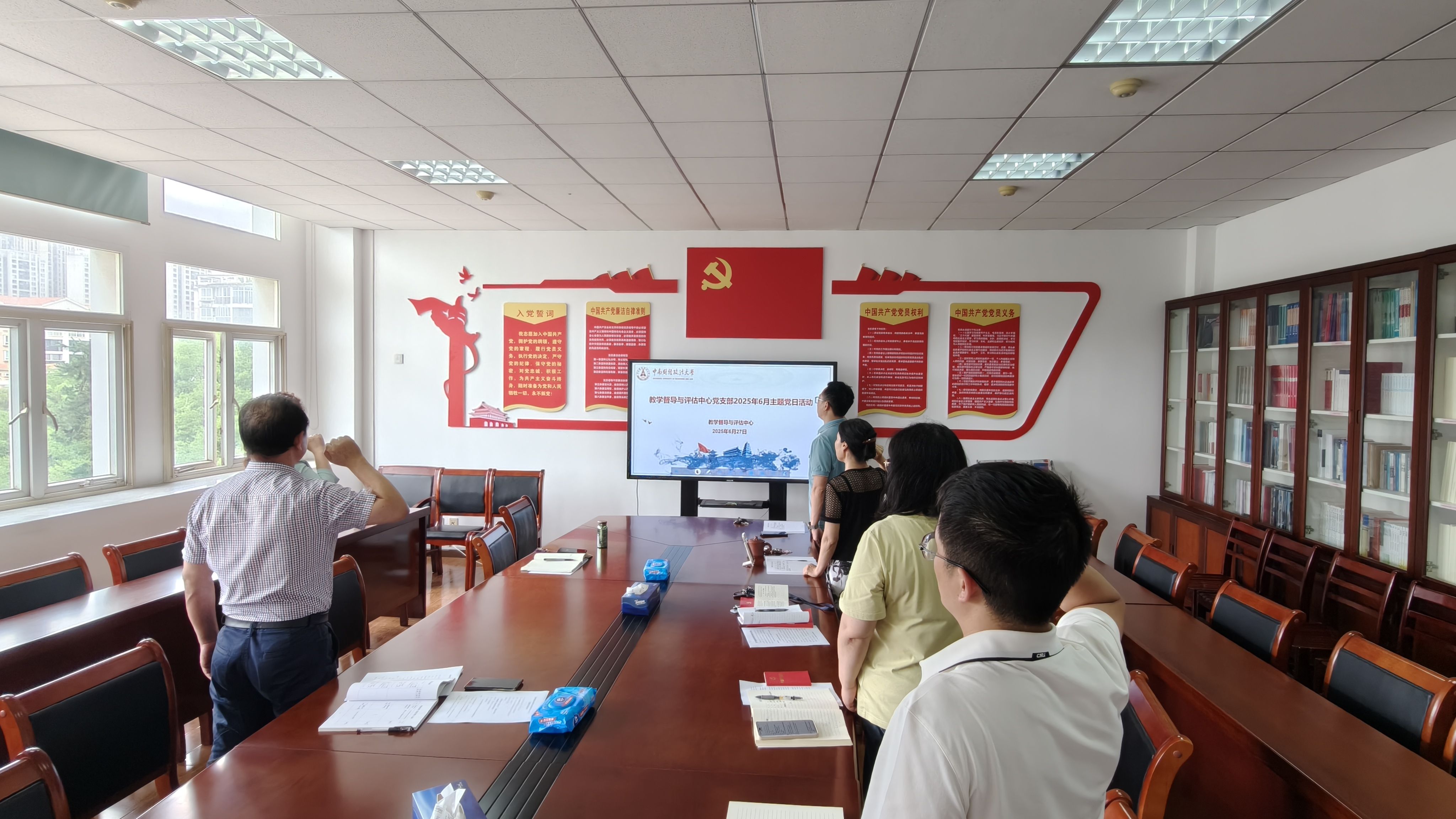 (通讯员 陈金好)6月27日下午,教学督导与评估中心(以下简称中心)党支部开展了2025年6月份主题党日活动,本次活动主题为“弘扬三大精神、锤炼过硬作风、激励担当作为”。机关党委纪委委员邓迪贤同志现场联系指导,活动由中心党支部书记万世清同志主持,中心党支部全体党员参加了活动。