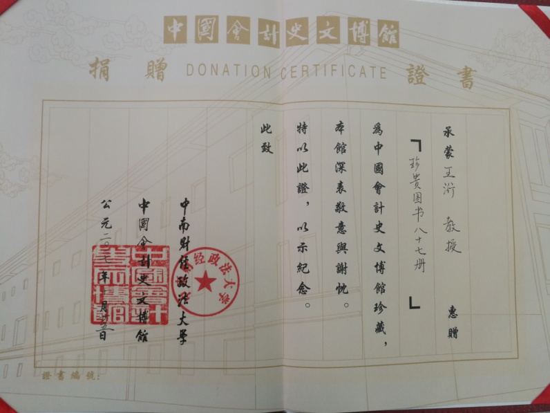 在郭道扬教授的指导和引领下,会计史文博馆的影响力逐步扩大,筹建工作得到了来自各界人士的关注与支持,文物征集取得新进展。王衍教授捐赠父亲王美涵先生珍贵图书八十七册、王崇桂先生捐赠珍贵图书八册、曾小青教授捐赠珍贵图书二十三册、河北地质大学捐赠《宋人佚简》等珍贵史料三套,本馆向各位捐赠者致以最崇高的敬意!