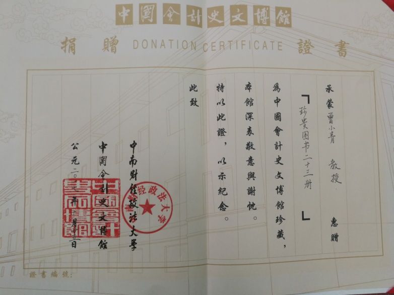 在郭道扬教授的指导和引领下,会计史文博馆的影响力逐步扩大,筹建工作得到了来自各界人士的关注与支持,文物征集取得新进展。王衍教授捐赠父亲王美涵先生珍贵图书八十七册、王崇桂先生捐赠珍贵图书八册、曾小青教授捐赠珍贵图书二十三册、河北地质大学捐赠《宋人佚简》等珍贵史料三套,本馆向各位捐赠者致以最崇高的敬意!