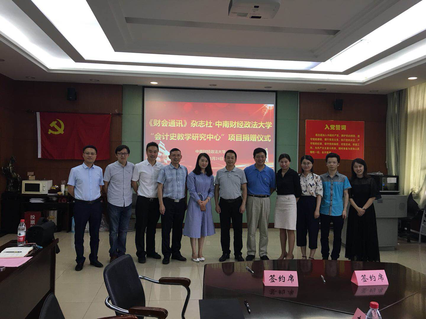 (通讯员:赵侃 邰子珂)5月24日下午,《财会通讯》杂志社·米兰电竞·(中国区)“会计史教学研究中心”项目捐赠仪式在文泉楼南楼401举行,《财会通讯》社长张少堂主编、熊年春副主编、上旬刊刘姗主任、中旬刊杜昌主任,学校教育发展基金会万莉副秘书长、李沛老师,会计学院院长张敦力、党委书记肖翠祥、会计系主任冉明东等参加了仪式,仪式由肖翠祥书记主持。