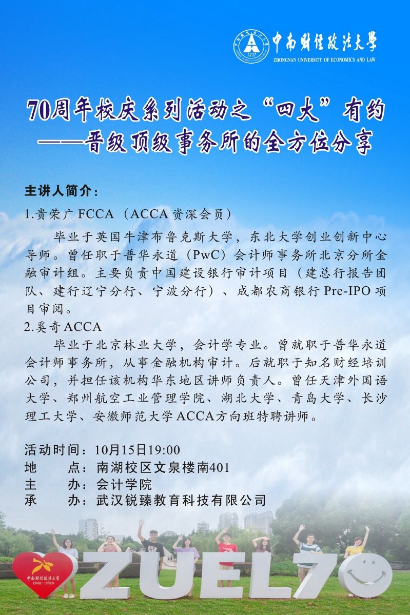70周年校庆系列活动之“四大”有约-晋级顶级事务所的全方位分享