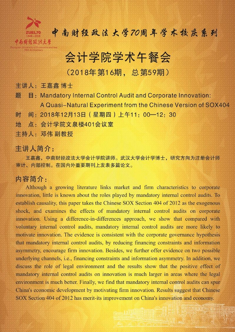 70周年学术校庆:会计学院学术午餐会第59期