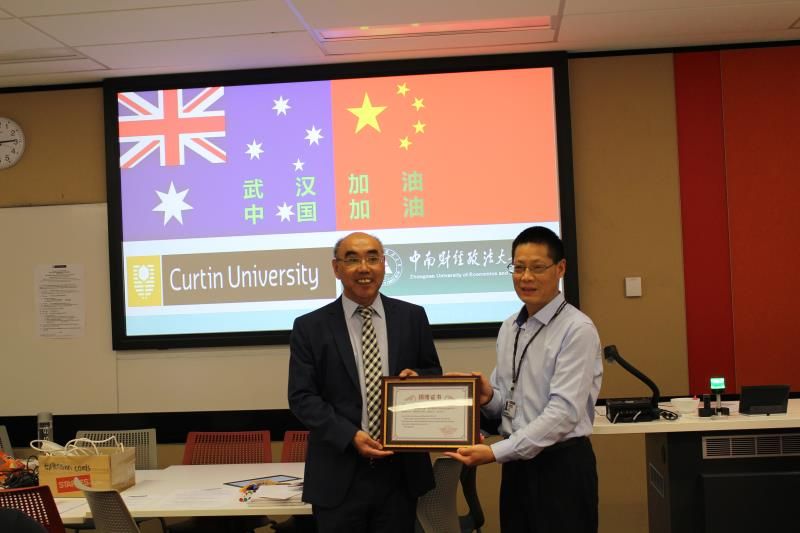 2020年2月13日下午,科廷大学会计学院举办了一个简短的捐赠仪式,张敦力院长委托王清刚教授出席。院长Saurav Dutta教授和张生权先生分别向王清刚教授递交了支票,王清刚教授代表张敦力院长分别向Saurav Dutta教授和张生权先生递交了捐赠证书,并致谢。