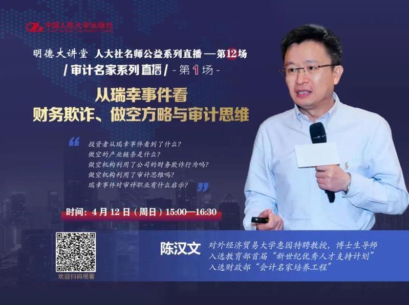 讲座主题:从瑞幸事件看财务欺诈、做空方略与审计思维