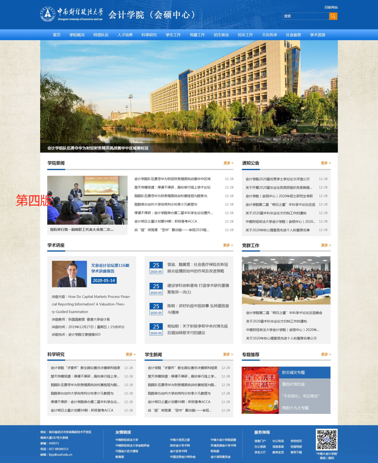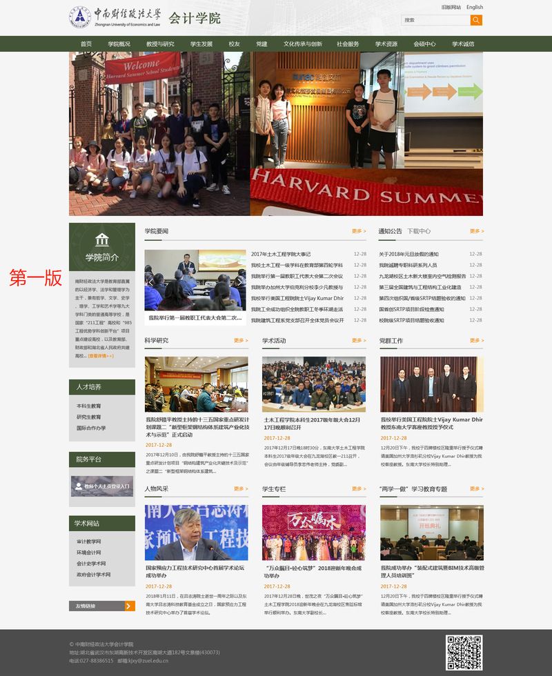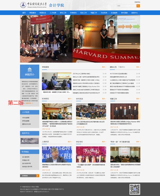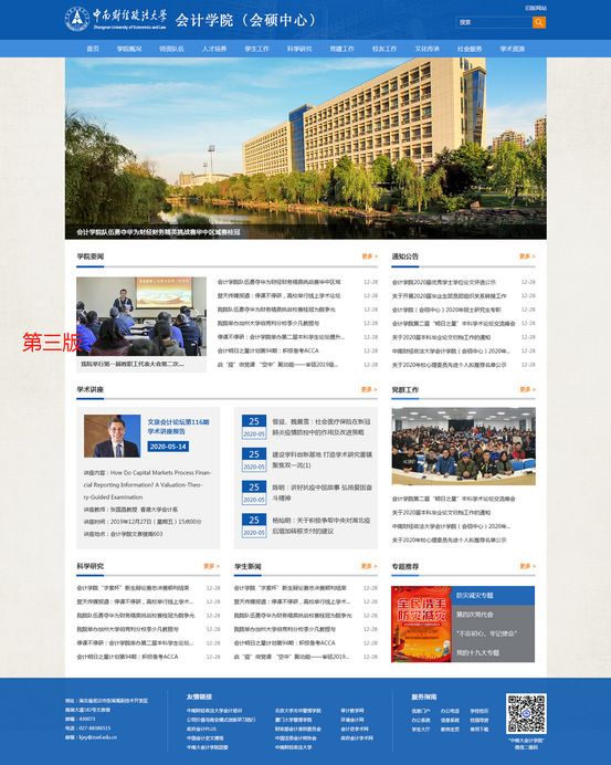 全新亮相的会计学院网站从整体架构、功能模块、用户体验等方面做了全方位升级,改版后的网站内容更加丰富、结构更加清晰。在布局上,首页设有7大详情版块及12大导航栏目,各版块功能明确、内容丰富,方便您快捷获取想了解的信息;在设计上,网站采用全新的视觉风格,为您提供更佳的视觉和浏览感受。
