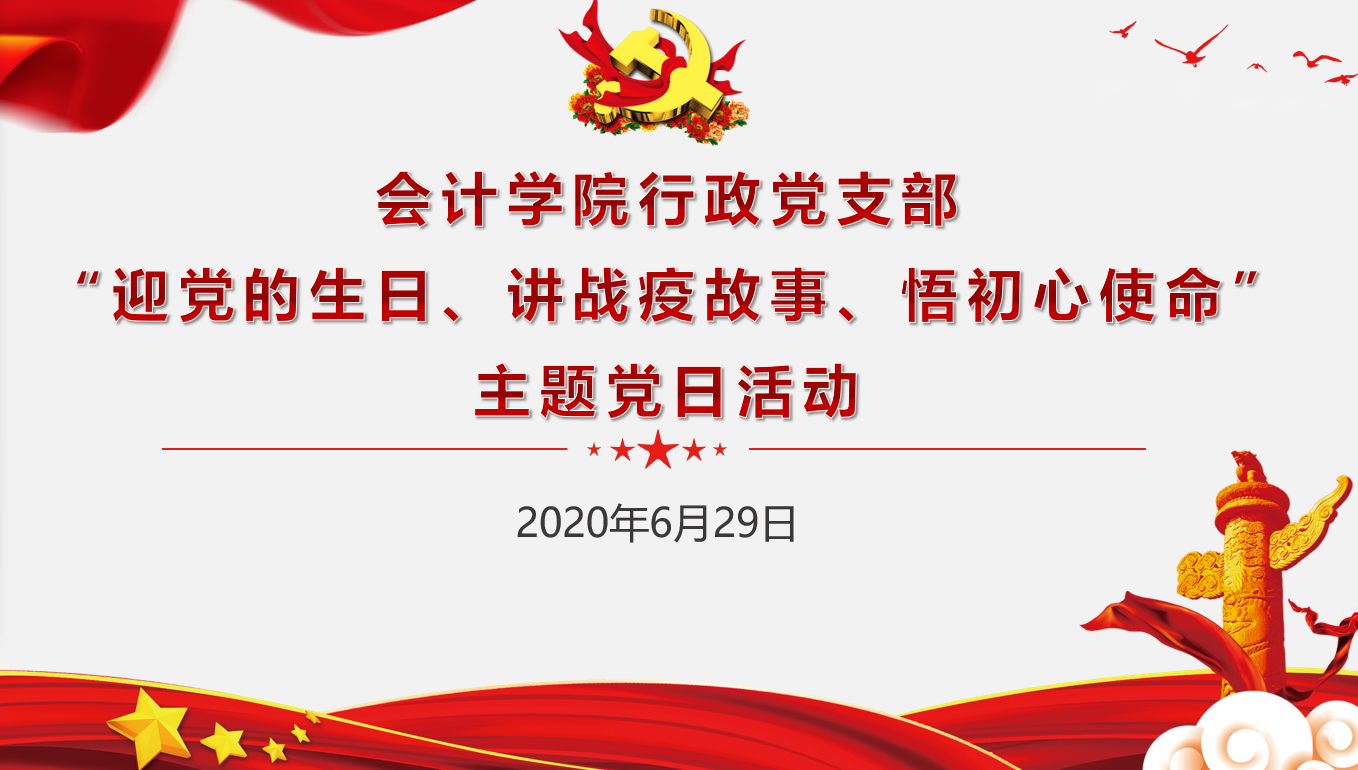 2020629930,会计学院行政党支部通过企业微信线上方式召开 “迎党的生日、讲战役故事、悟初心使命” 六月份支部主题党日活动,会议由支部副书记陈楠同志主持,院党委书记殷修林同志、院党委副书记王延同志、院党委副书记兼行政副院长徐会超同志及全体行政党支部的党员同志们参加了会议。