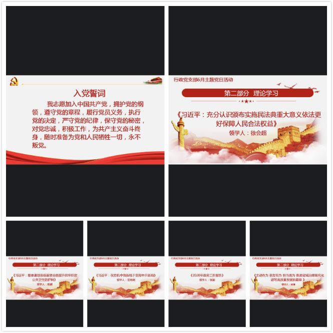 徐会超副书记领学了《习近平:充分认识颁布实施民法典重大意义依法更好保障人民合法权益》,他阐述了民法典的重要意义,并指出,党员同志们要做学习、遵守、维护民法典的表率,维护人民权益、化解矛盾纠纷、促进社会和谐稳定。张颖同志领学了《2020年政府工作报告》,本报告是由李克强总理在第十三届全国人民代表大会第三次会议上所作,回顾了2019年和今年以来的工作毛病对今年发展朱涛目标和下一阶段工作总体部署。随后,同志们学习湖北省委十一届七次全会精神,由林琳同志领学了《主动作为 奋发有为 担当善为 推进省域治理现代化谱写高质量发展新篇章》。