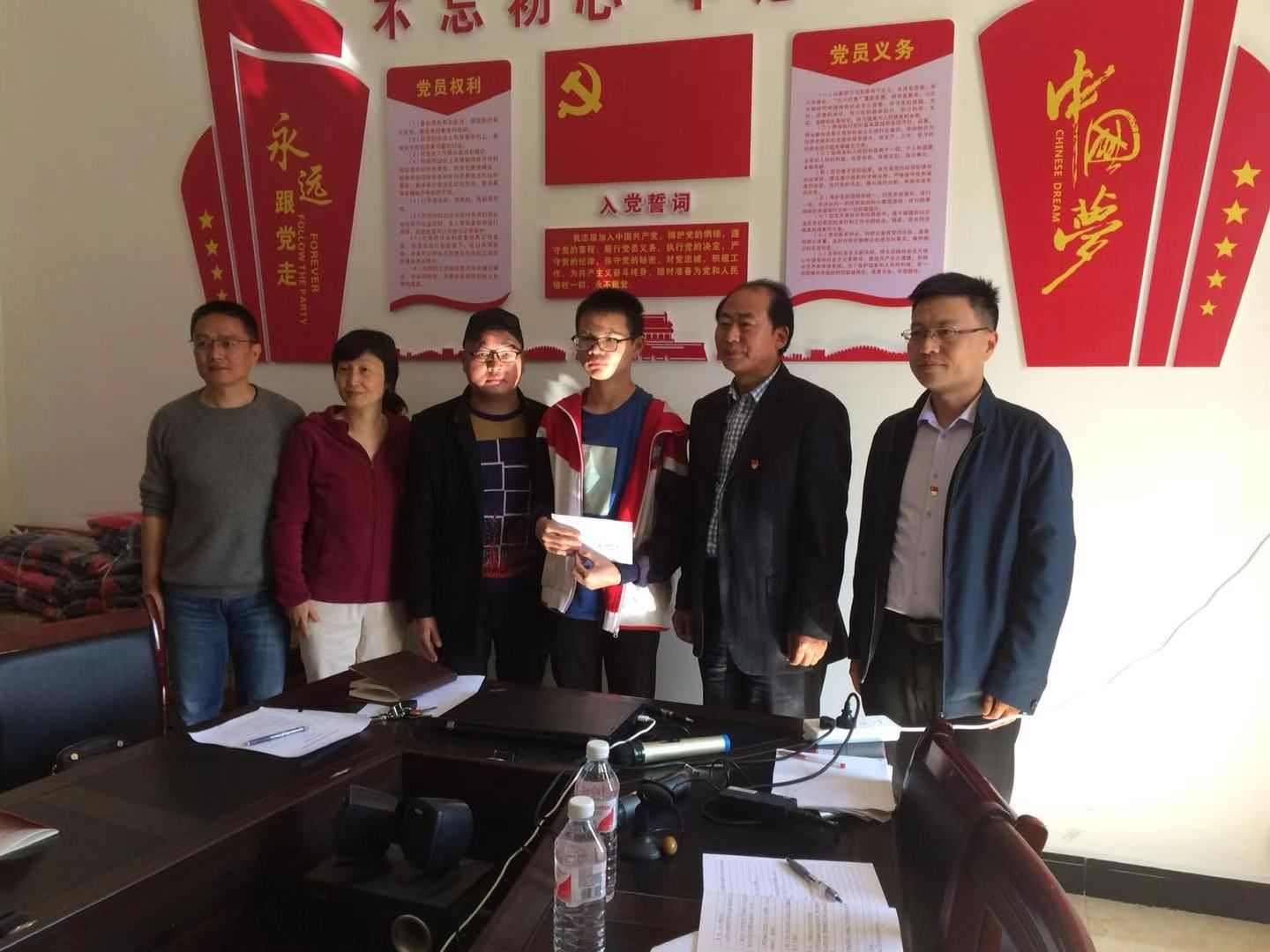 第四项,举行捐款仪式,行政党支部成员对红石村进行爱心帮扶。殷修林书记、王延副书记、徐会超副书记代表支部对为其患白血病父亲捐献骨髓的小英雄进行结对帮扶(小英雄事迹详见后续进一步报道),并对蔬菜产业基地进行产业帮扶。