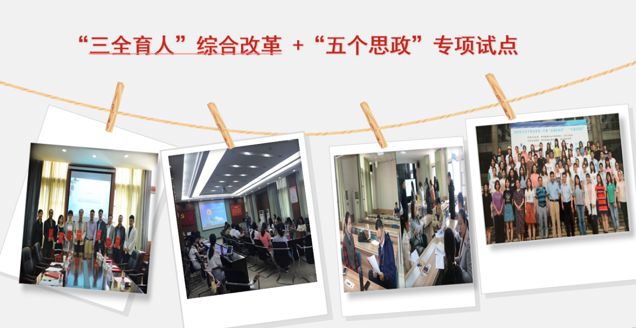发掘思政元素,构建“三+”全过程育人体系。根据学院各项工作内在的育人元素和育人逻辑,努力实现有效资源向育人环节聚集的生动局面,在专业育人、学科育人、科研育人,提升教育教学质量上改革发力,形成“党建+业务” “专业+思政” “研学+树人”育人特色。