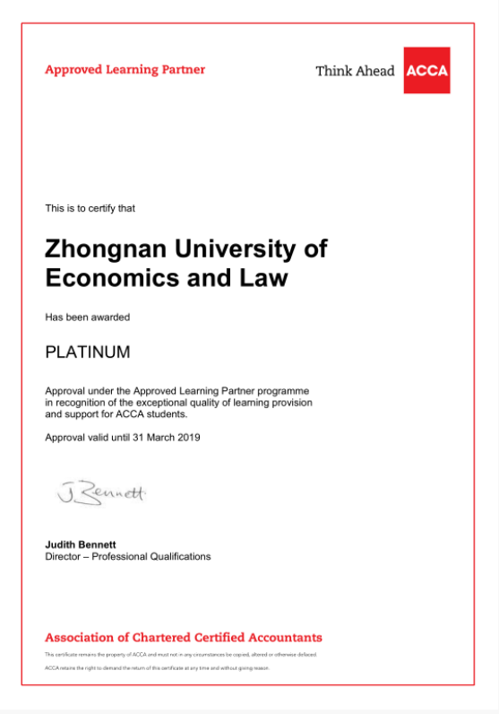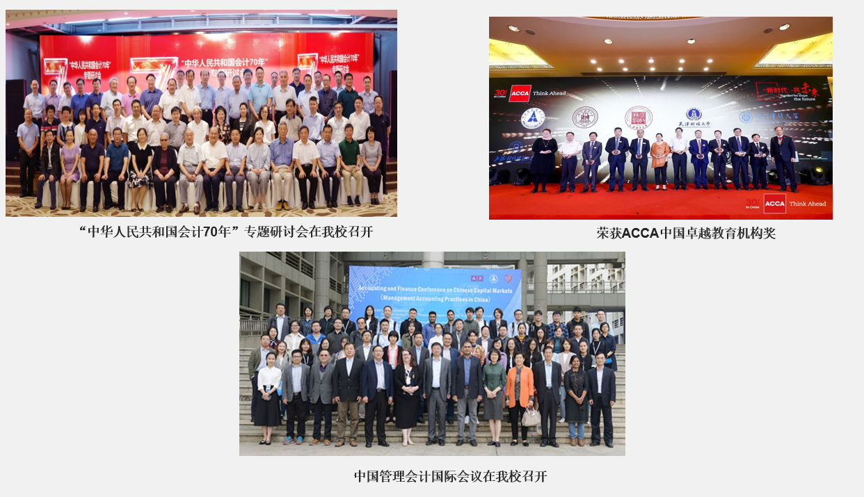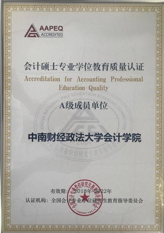 学院获批“第16届世界会计史学家大会”承办权、“ACCA 中国卓越教育机构”荣誉称号和 ACCA 白金级认可培训机构资格。会计学专业、财务管理专业入选首批国家级一流本科专业建设点。会计学专业获批“湖北省普通本科高校荆楚卓越经管人才协同育人计划”;会计专业硕士获得全国 MPAcc 教指委 AAPEQ 认证 A 级,成为全国首批获得该认证的办学单位。