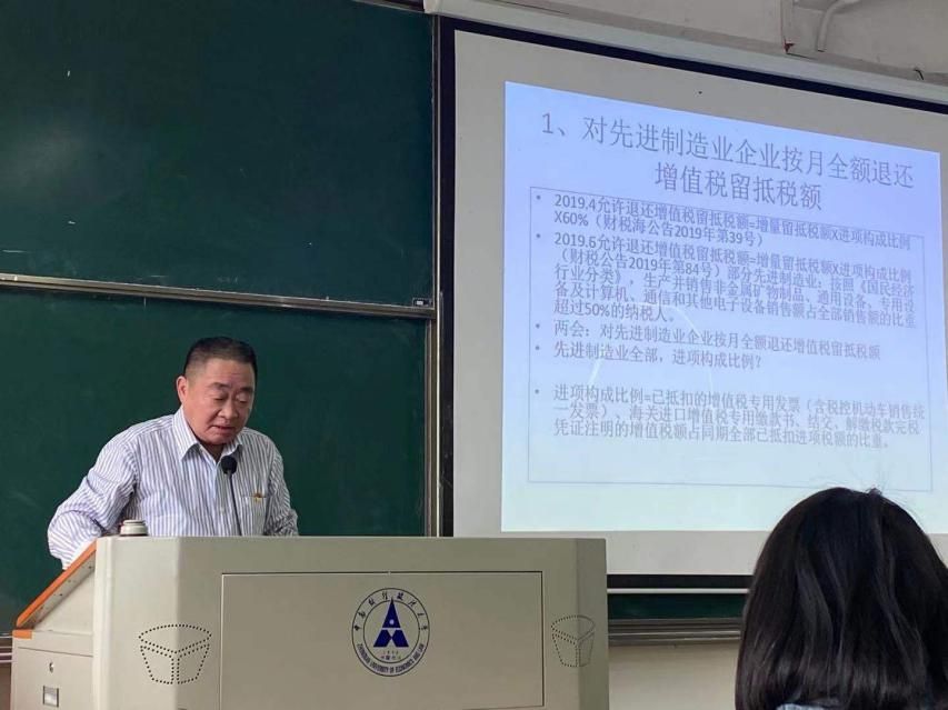 随后,蔡桂如教授首先从他的工作经历出发,讲授了他对于税务工作的理解,并就会计硕士研究生今后的就业方向提出一些个人建议,同时从四个不同的方面对李克强总理的政府工作报告进行解读;对新税法环境下不同企业的适用展开了研究,同时告知在座的每位研究生在今后工作中应适时关注国家新政策和最新动态。随后,蔡教授讲述了本人在实际税务工作中为企业创造直接价值的鲜活案例。蔡教授的语言风趣而务实,内容既贯穿了我们课堂中学习的内容,又衔接了日常税务师工作中所遇到的种种问题,精彩绝伦的演讲引发了全场同学的共同思考。