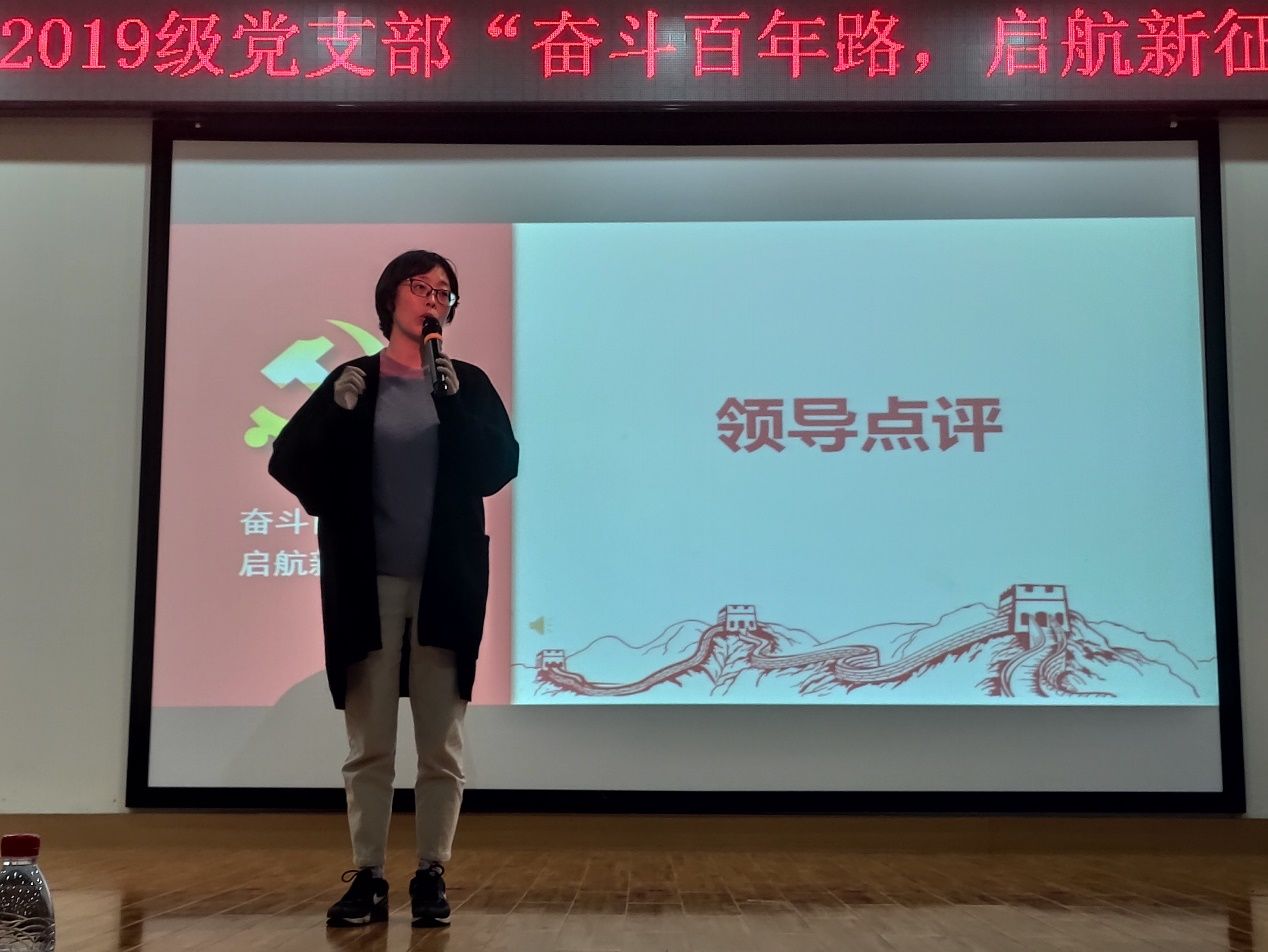 活动最后,校学生工作部葛明副部长对本次活动做了点评。葛明首先对活动的圆满举行表示祝贺,同时对活动取得的良好效果给予肯定。其次,她从内容和形式两方面对此次比赛进行点评,强调同学们在党史学习教育中要把“学”、“悟”、“践”充分结合,铭记历史、立足当下、畅想未来。最后,葛明针对同学们在表演过程中的服饰、配乐、表情管理等方面提出建议。