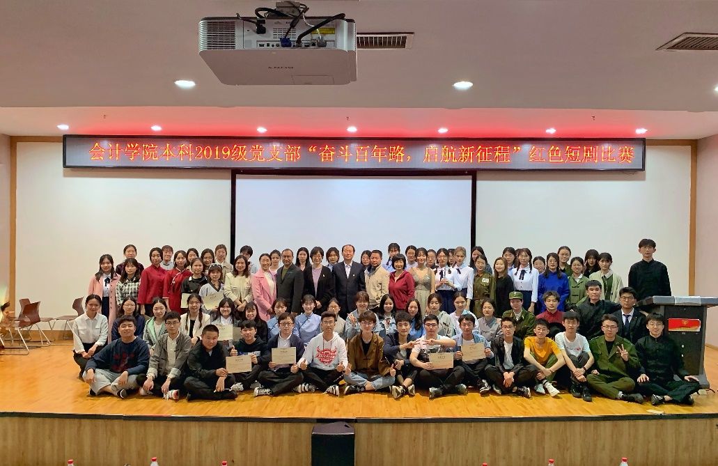 (通讯员 黄捷 李圣哲)2021年4月24日19:00,由会计学院本科2019级党支部主办的“奋斗百年路 启航新征程” 红色短剧比赛在文济楼201报告厅举行,此次活动邀请到会计学院党委书记殷修林教授、马克思主义学院张瑞堂副教授、校学生工作部副部长葛明、会计学院党委副书记王延、米兰电竞·(中国区)报主编陈博老师担任评委。此外,学院党务秘书畅雅莉老师、本科2019级党支部书记黄艳老师、2019级年级主任陈楠老师作为嘉宾出席。