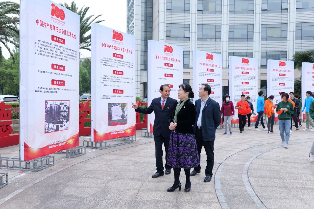 20块百年党史文化知识展板在中原楼广场巍然耸立,壮观雄伟,波澜壮阔。上午七时三分,国旗护卫队迈着坚毅的步伐,伴着铿锵的口号,越过青云桥,将鲜艳的五星红旗护送到中原楼广场,伴随着国歌声冉冉升起。校党委常委、副校长姚莉教授宣布会计学院“学党史·悟思想·办实事·开新局”主题升旗活动暨党史文化知识展开幕。活动第一项,会计学院党委书记殷修林带领同志们重温入党誓词,“为共产主义奋斗终身”的誓言牢记心中,响彻耳畔,庄严神圣。
