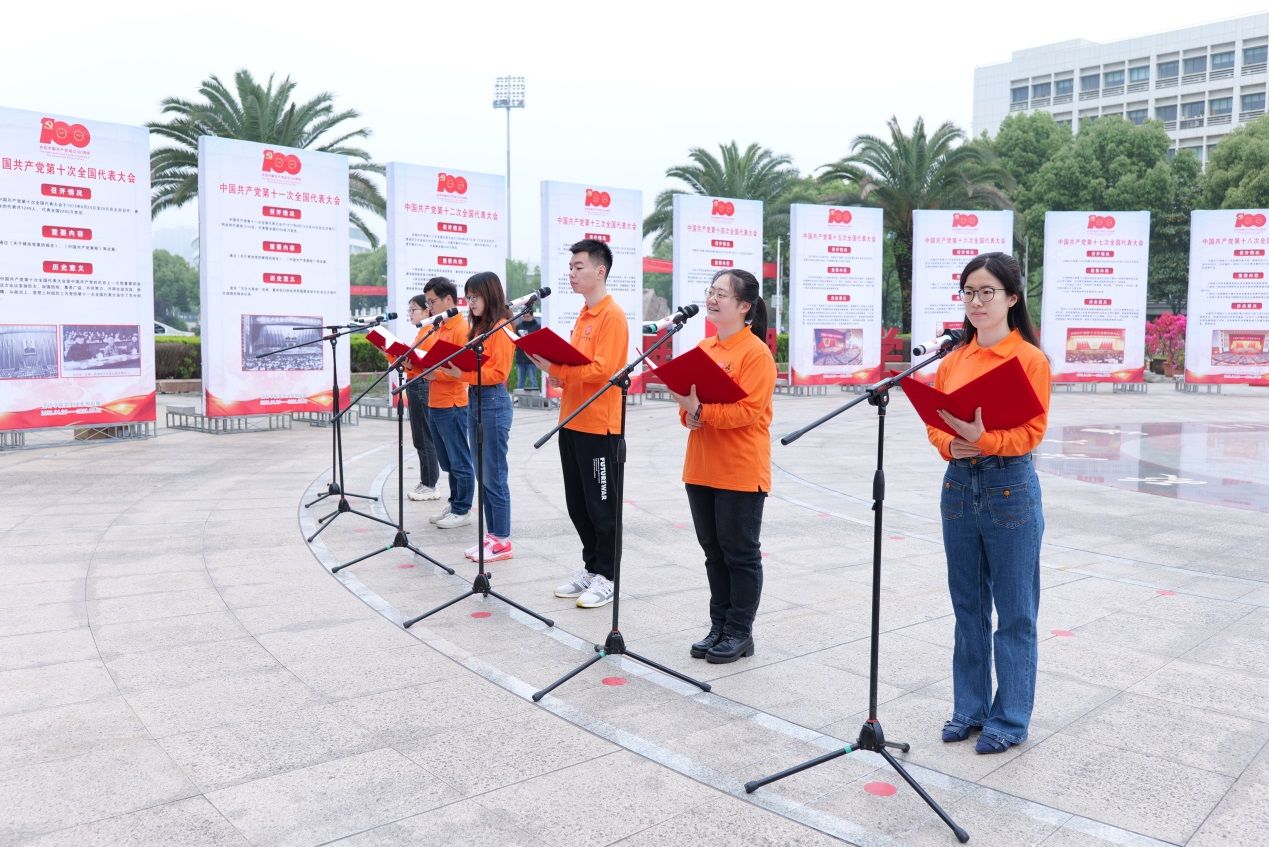 随后,毕业班党员代表陈蕙章、邱言、郭思媛、肖佟、刘海宁、廖培琳进行配乐诗朗诵《党在我心,筑梦前行》。相会江城,莘莘学子苦心孤诣,钻研东经西典,练成博文明理千般艺;共计天下,煌煌俊才意气风发,展翅北国南疆,建树厚德济世百年功。饱含深情、抑扬顿挫的朗诵将主题升旗活动推向了高潮,祝福每一位毕业生学子不忘初心,前程似锦,在实现中华民族伟大复兴的历史征途中续写新荣光。