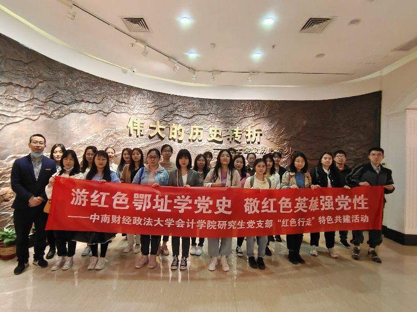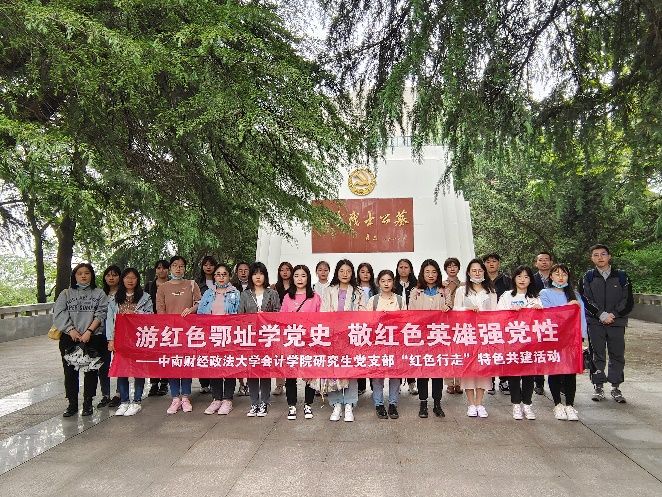 4月24日,响应校党委组织部的号召,借助武汉市文化和旅游局整合全市红色旅游资源设计的手绘地图,学硕2019级会计学研究生党支部、学硕2019级财管审计研究生党支部、学硕2020级财管审计研究生党支部联合开展以“游红色鄂址学党史,敬红色英雄强党性”为主题的“红色行走”特色活动。三个支部共赴“红色行走”,前往武汉八七会议会址纪念馆、红色战士公墓接受党史、国史教育,在“红色行走”中温习党史,在追思“红色英雄”、领悟“红色故事”中传承光辉精神。