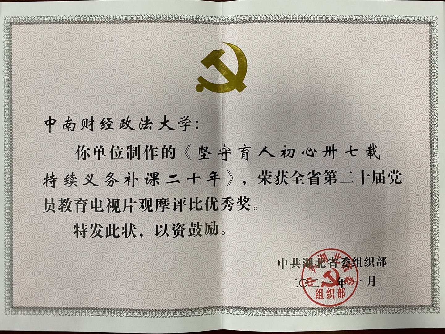 (通讯员 畅雅莉 徐筱妍) 在全面建成小康社会的征程中,教育是国之大计、党之大计。会计学院立足本院孙贤林教授“坚守育人初心卅七载,持续义务补课二十年”的先进事迹,拍摄的主题党员教育宣传片在全省第二十届党员教育宣传电视片观摩评比中荣获优秀奖。