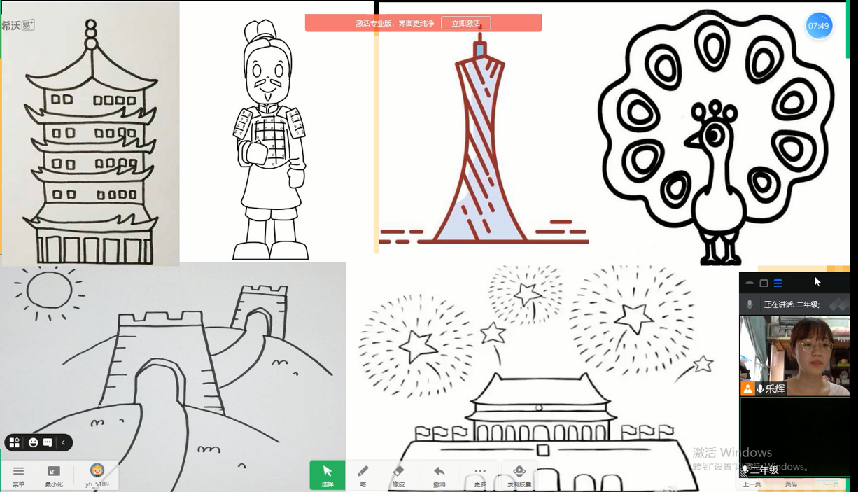 接下来,乐辉同志带领同学们做手指休息操,活动小手,放松身心,随后鼓励同学们根据所给的简笔画画出自己喜爱的建筑。同学们心灵手巧,表现积极,认真完成了课堂小任务。乐辉同志展示了同学们的作品,夸奖同学们观察细致,鼓励同学们发挥想象力,尝试更多的画作。