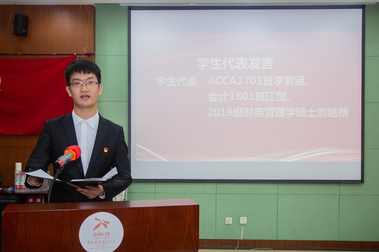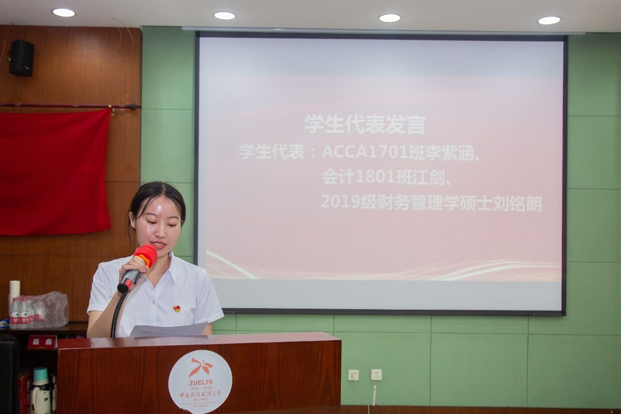 徐会超副院长在仪式伊始指出,2021年是中国共产党成立100周年,本次奖助学金的评选与颁奖列入了会计学院践行“学党史 办实事 见行动”的主题活动,在七一前夕、毕业生即将离校的时间节点举行此次颁奖仪式,意义不同寻常,既是向中国共产党成立一百周年献礼,也是为了激励广大同学立大志、明大德、成大才、担大任!