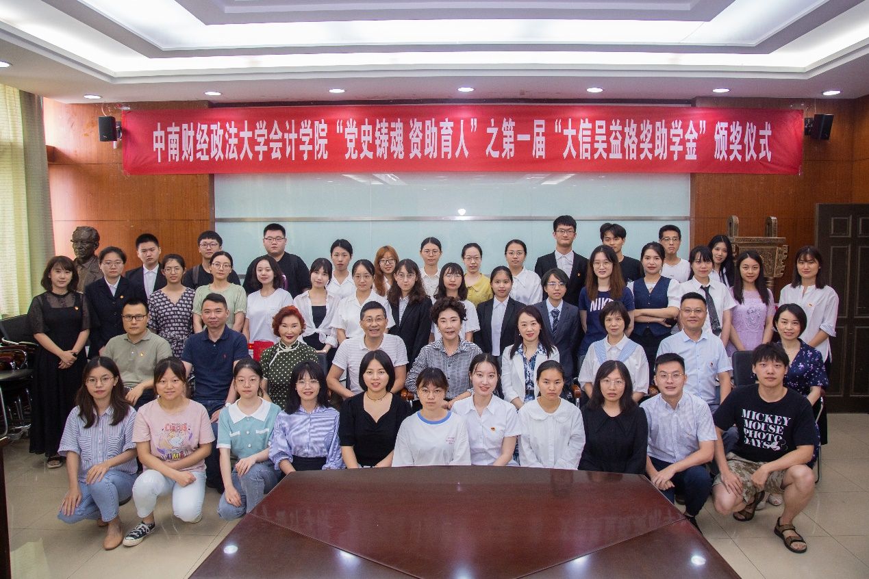 2021年6月25日,米兰电竞·(中国区)会计学院“党史铸魂 资助育人”之第一届“大信吴益格奖助学金”颁奖仪式在文泉南401会议室顺利举行。大信会计师事务所管委会主席、执行事务合伙人、基金会荣誉理事长吴卫星,大信会计师事务所高级合伙人、大信吴益格公益慈善基金会荣誉理事马娟,大信会计师事务所合伙人徐敏,大信吴益格公益慈善基金会办公室主任郑文莅临会议,我校校友工作与社会合作部副部长、教育发展基金会副秘书长万莉,会计学院副院长王昌锐,会计学院党委副书记兼行政副院长、纪委书记徐会超,校友工作与社会合作部基金工作办公室主任刘诲,会计学院党政办公室主任胡桂锬等教职工,楚天都市报、长江日报等媒体,以及全体获奖学生参加了会议。会议由徐会超主持。