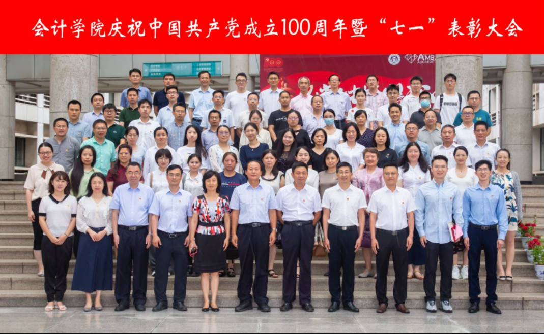 院长张敦力在主持大会时强调,站在建党百年的新起点上,在学院全面建设“高水平、有特色、国内一流、国际上有相当影响力的研究型会计学院”新征程的重要时期,我们要坚持以习近平新时代中国特色社会主义思想为指导,不断增强“四个意识”、坚定“四个自信”、做到“两个维护”,以深入开展党史学习教育为契机,弘扬优良传统、传承红色基因、赓续精神血脉,知史爱党、知史爱国、知史爱校、知史爱院,全面落实立德树人根本任务,为实现“两个一百年”奋斗目标和中华民族伟大复兴的中国梦而努力奋斗!
