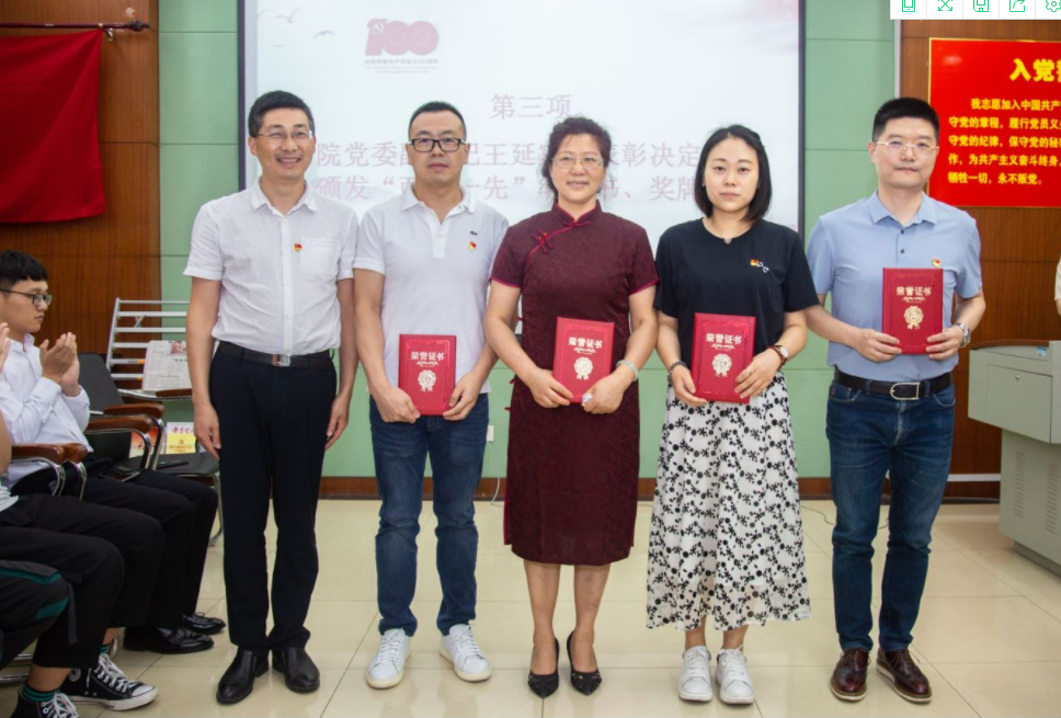 学院党委书记殷修林为学院“先进基层党组织”、“优秀党务工作者” 获奖对象颁发证书。