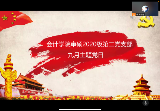 2021年9月17日,会计学院2020级审硕第二党支部在腾讯会议线上开展了主题为“学史力行践真知,知行合一建新功”的主题党日活动。活动由支部书记黄俊德主持,支部全体党员同志参加了本次活动。