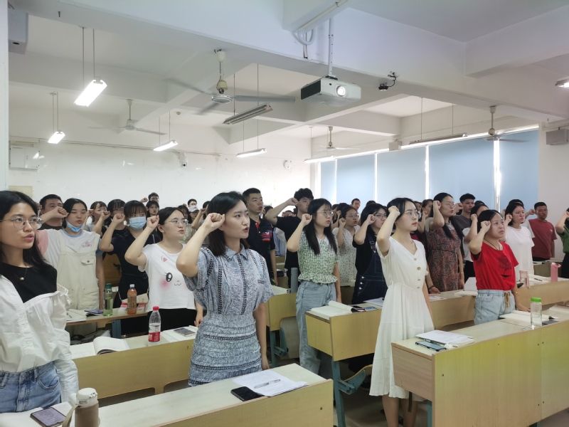 在主题党日活动中,会计学院2021级会硕第一党支部副书记李炳晓同志带领全体党员重温入党誓词;第二党支部书记王佳媛同志领诵《中国共产党章程》第一章“党员”第5-9条,全体党员现场交纳党费。